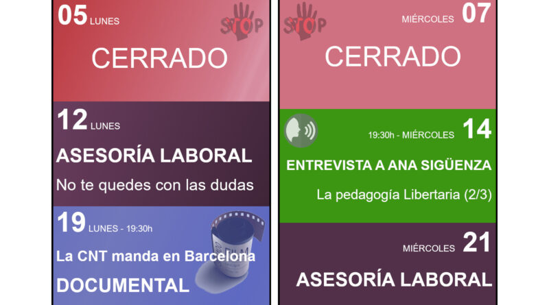 Leer másTras el parón veraniego, CNT Ciudad Real retoma sus actividades con su agenda cultural de septiembre en los Espacios Libres